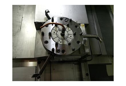 4采用液壓轉(zhuǎn)臺實現(xiàn)B軸運動,實現(xiàn)專用鵝頸刀具自動進刀,進行差速器殼內(nèi)球面、內(nèi)階面的加工